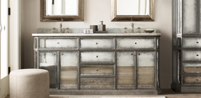 If you have a standard looking fixture that you are thinking about upgrading consider this bathroom lighting idea from restoration hardware.